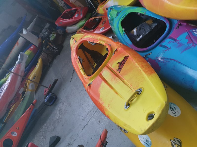 Used Karnali Large size Jaffa Yellow/orange colour Connect 30 Outfitting A truly forgiving, high volume River Runner and Creeking kayak that has such a predictable ride it will keep you inspired t...