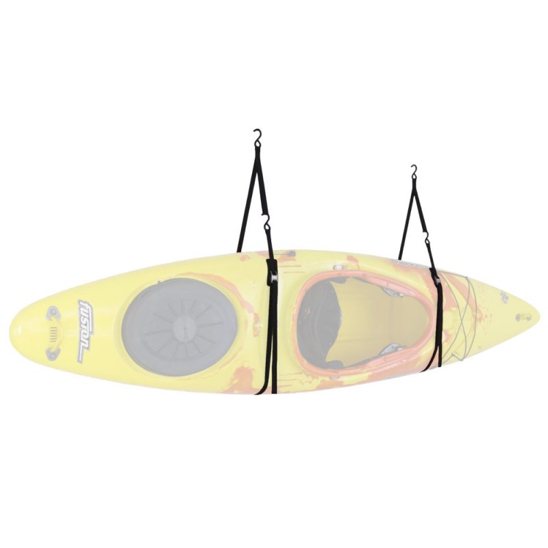 Tough, adjustable nylon straps suspend your kayak securely out of the way.